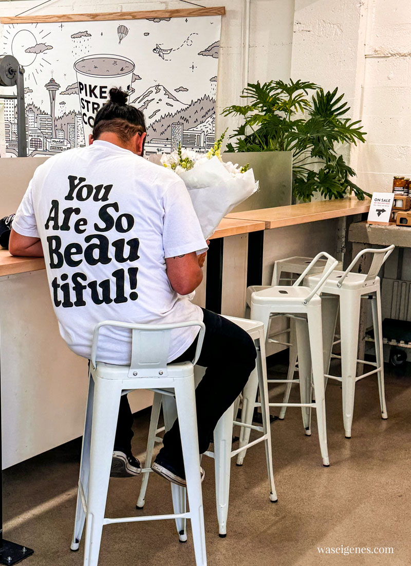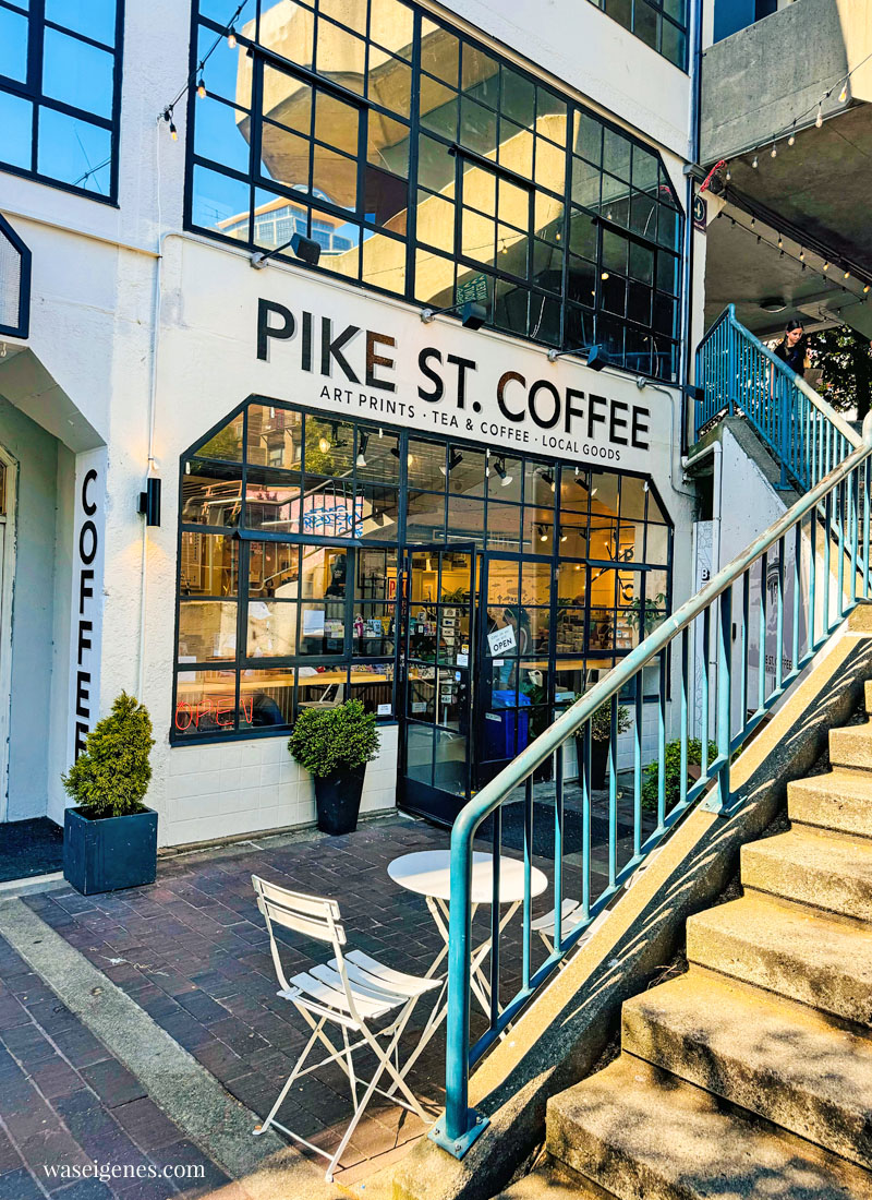 Wir kehrten stattdessen bei Pike St. Coffee ein. Das liegt auf der hinteren Seite der Markthalle, man kommt automatisch daran vorbei, wenn man die viele Treppen runter zur Waterfront läuft. Sehr idyllisch und gemütlich.