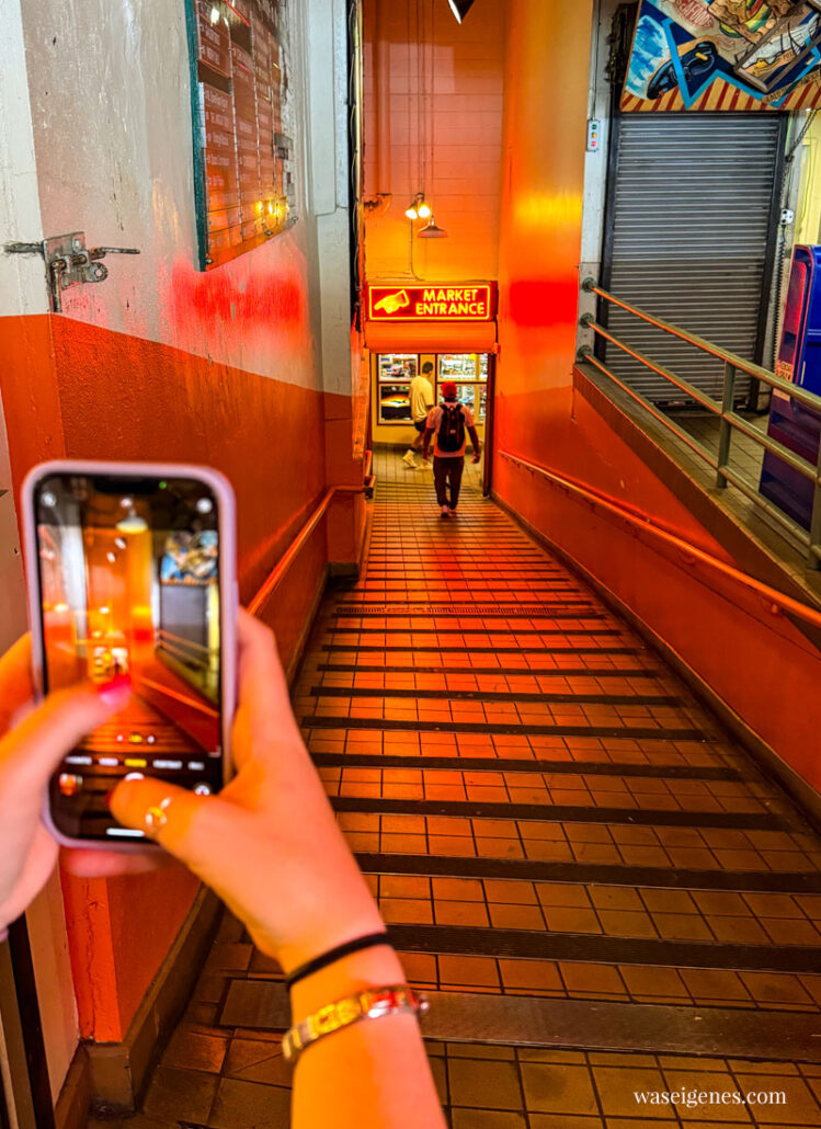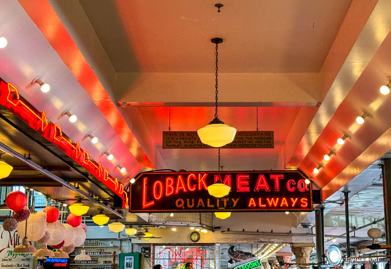 Ganz bekannt sind diese zwei PUBLIC MARKET Schilder oder Buchstaben, auf den Dächern der Hallen. Läuft man die Pike Street oder die Pine Street runter, Richtung Halle und Wasser, dann sieht man sie schon von weitem.