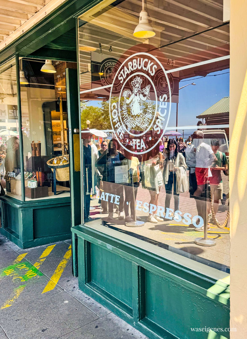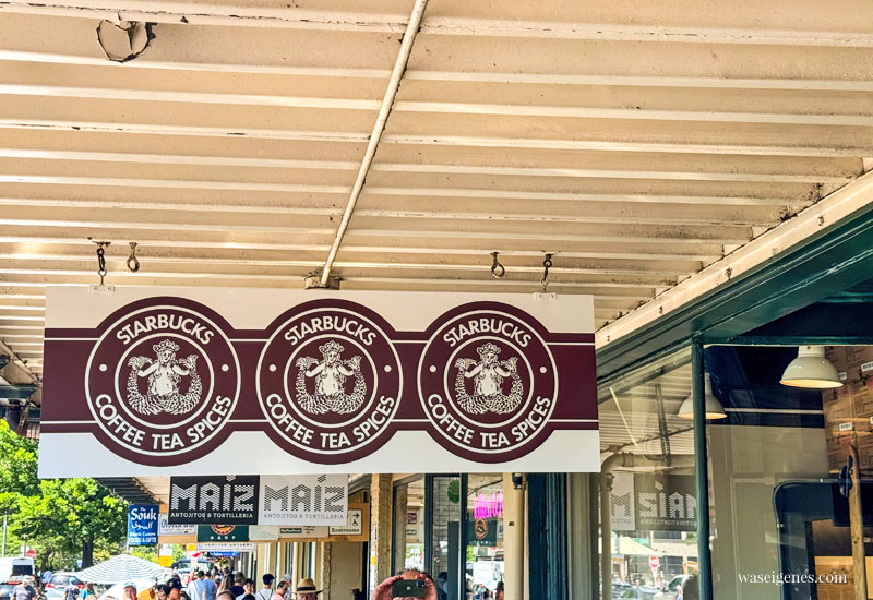 Wieder auf der anderen Seite, auf dem Pike Place (was eigentlich, also nach meinem Empfinden, kein Place, sondern eine Straße ist) befinden sich weitere Geschäfte, Läden, Hallen, Cafés und Restaurants und dort findet Ihr auch das erste und älteste Starbucks!