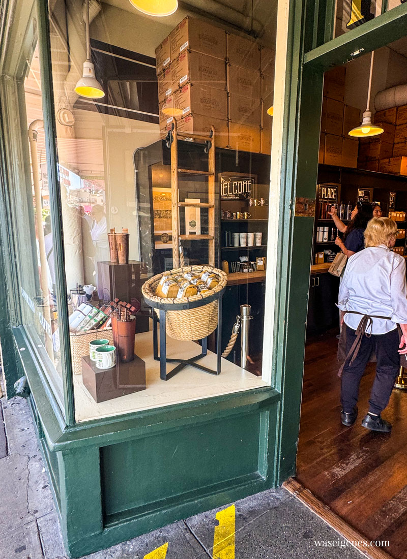 Ursprünglich gab es bei Starbucks Kaffeebohnen, Tee und Gewürze zu kaufen, wir man oben auf dem Schild noch sehen und lesen kann – coffee, tea and spices.