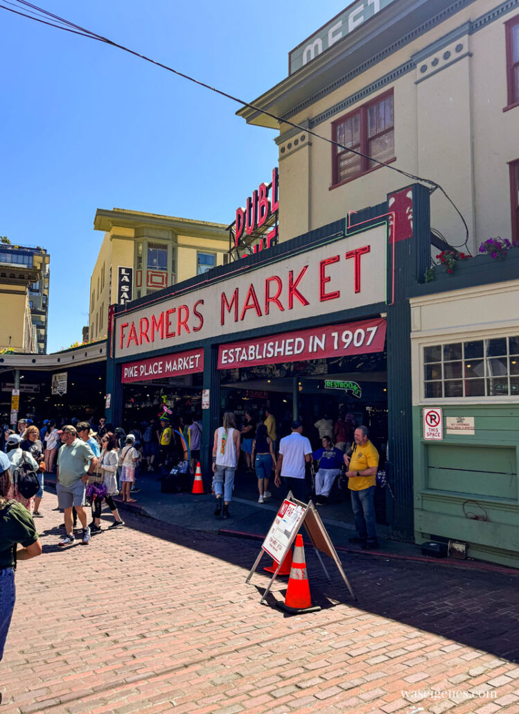 1907 wurde er bereits eröffnet und diente seit jeher den Händlern, Bauern und Kaufleuten als Geschäftssitz. Heute kann man immer noch Obst und Gemüse, Blumen, Fleisch, Fisch, Postkarten, Lederwaren, Käse, Backwaren, und und und dort kaufen und gleichzeitig ist das ganze Areal ein wahnsinns Touritenmagnet in Seattle.