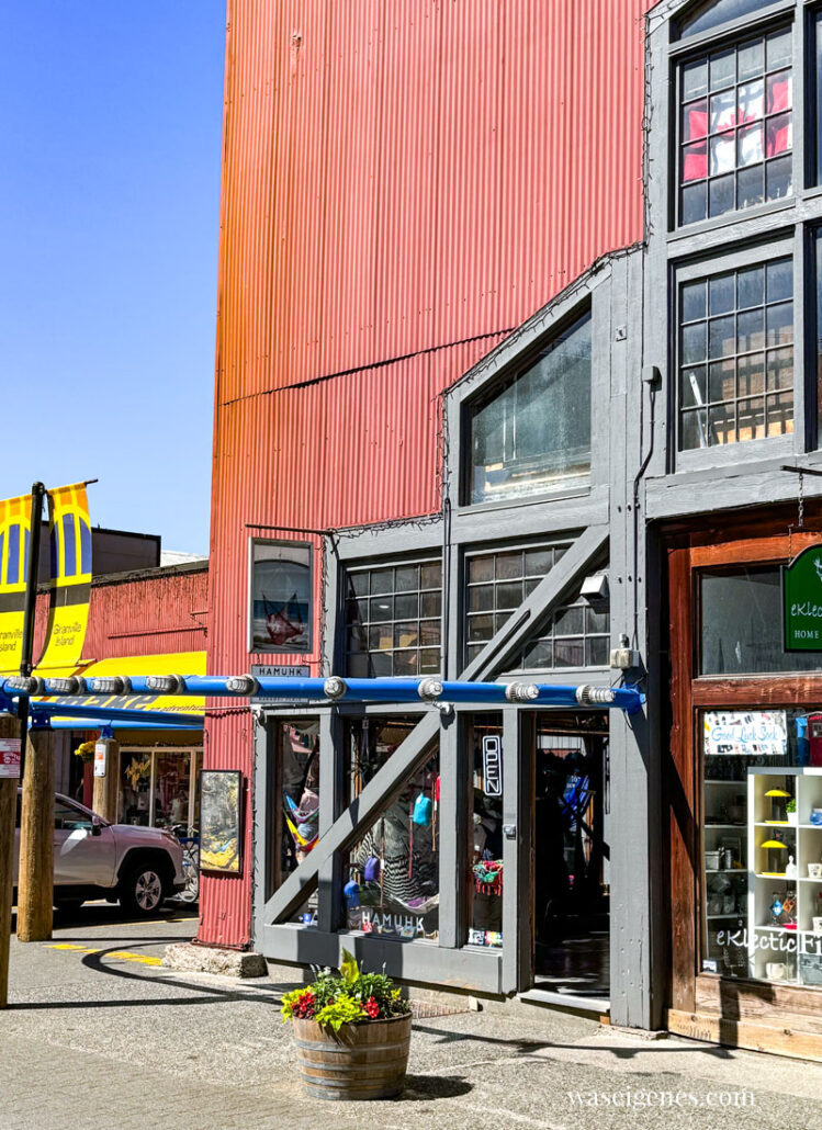 Direkt am Wasser, mit einem Hafen, einer riesigen Markthalle, rote Backsteinmauern und ganz viel Geschichte der ehemaligen Industrie und den indigenen Völker, die einst dort lebten, ist Granville Island heute ein wichtiger künstlerischer und kultureller Stadtteil Vancouvers.