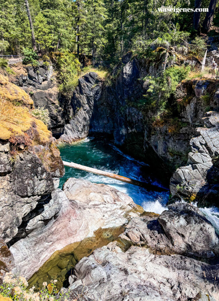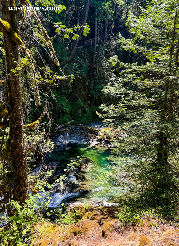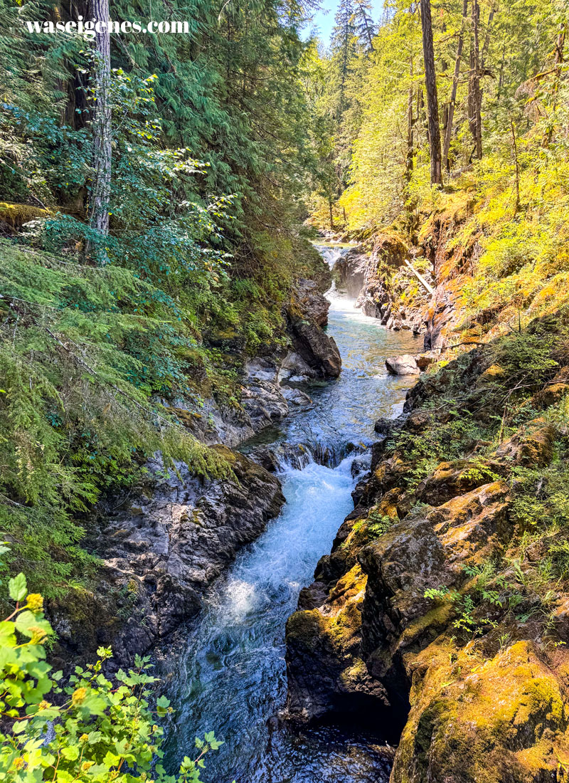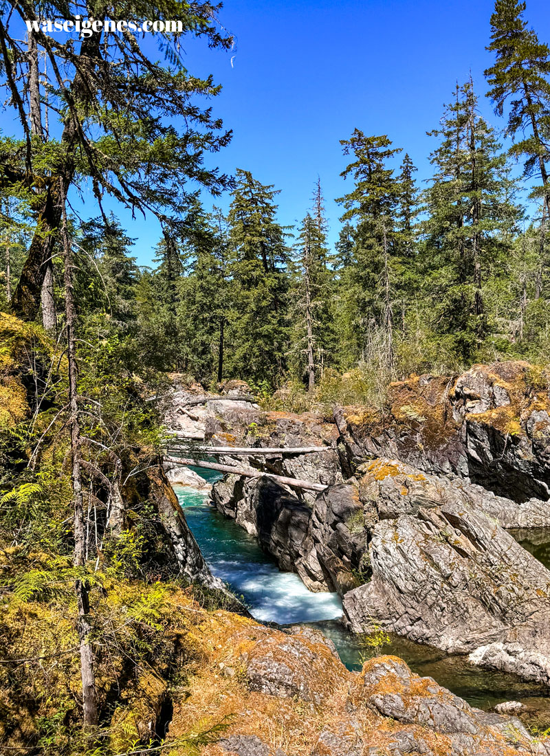 Der Park erstreckt sich an beiden Seiten des Little Qualicum River. Wir sind eine gute Stunde über den schmalen Fußweg entlang des Flusses gelaufen und haben diesen tollen Blick auf die Wasserfälle genossen.