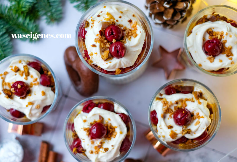 Weihnachtliches Lebkuchen-Schichtdessert mit Schattenmorellen und Mascarpone-Zimtcreme