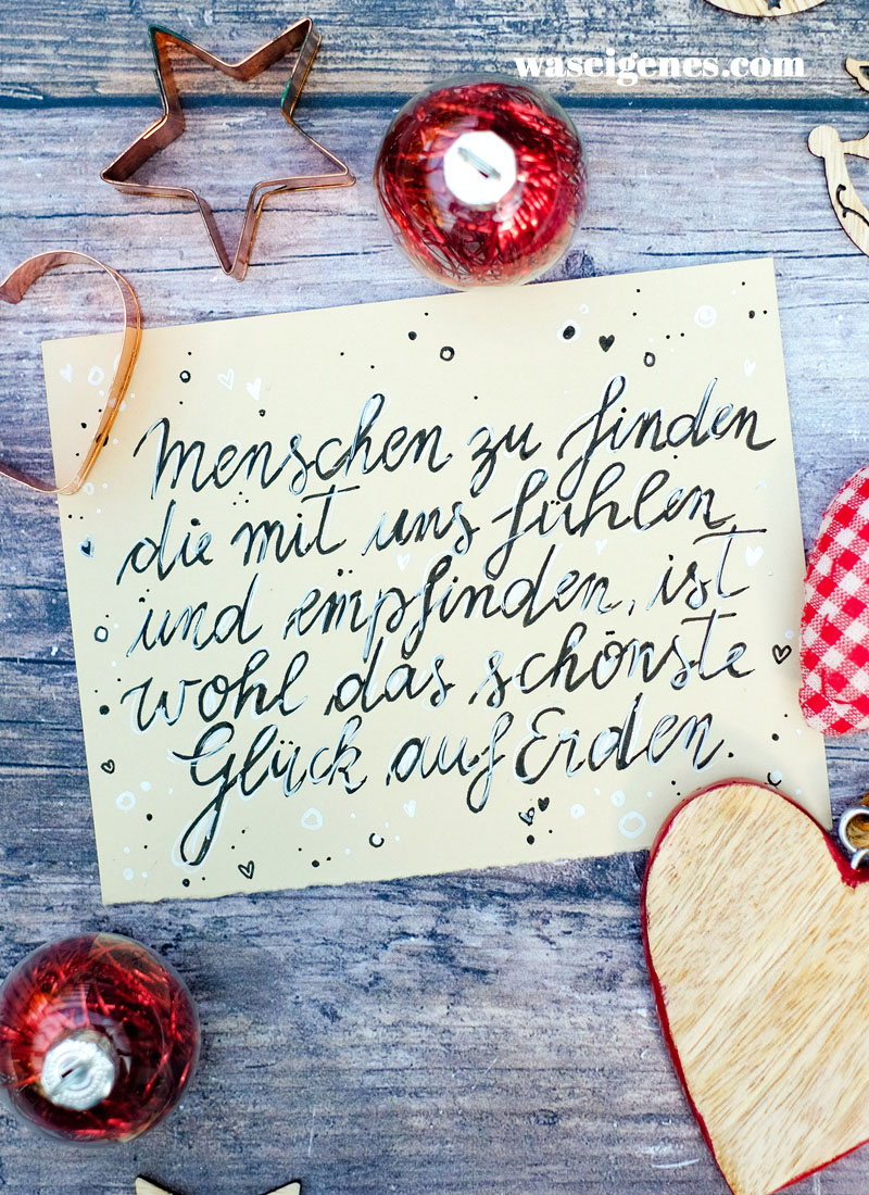Ihr Lieben, Endspurt! Noch liegen ein paar Tage vor uns, aber mit dem heutigen Freitagnachmittag beginnen die Weihnachtsferien, gehen viele in den Urlaub, sollten jetzt wirklich mal langsam alle Geschenke da und die Einkaufsliste geschrieben sein. :-) Ich kann hier noch nicht bei allen Punkten einen Haken machen. Beim heutigen Kalendertürchen meines Adventskalenders der guten Gedanken geht es im Herzensmenschen, um Menschen, die mit uns fühlen und empfinden.