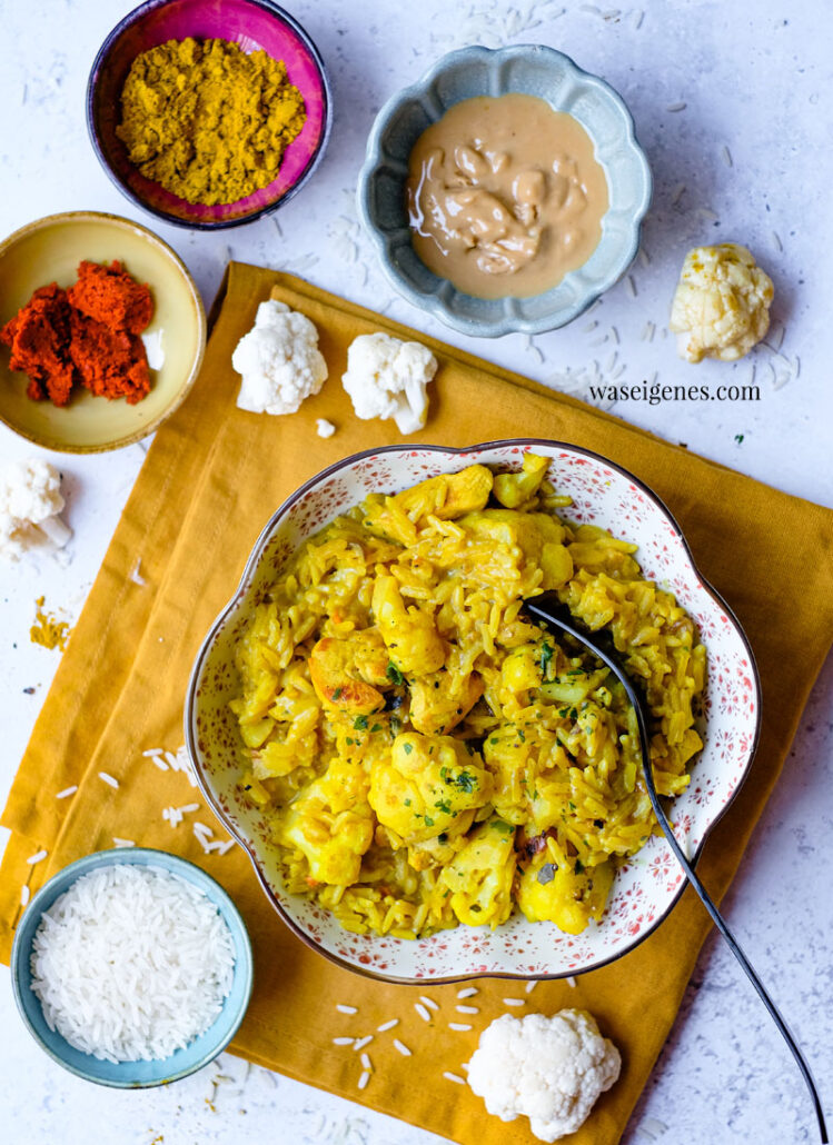 Und wenn ich an Hähnchenbrust oder Reis oder Pfanne denke, dann muss ich sofort an meine liebste Blumenkohl-Reis-Pfanne mit Hähnchen und viel Curry denken. Die könnte ich mindestens einmal die Woche essen.