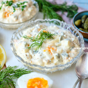 Solltet mein Eiersalat Rezept einmal ausprobieren, dann schreibt mir doch sehr gerne, wie Euch der Salat geschmeckt hat. Weiter unten im Kommentarfeld könnt Ihr Euer Feedback hinterlassen und tippt dabei auch gerne die Sterne an. Das würde mich nicht nur sehr freuen, das unterstützt auch meine Arbeit hier für den Blog.