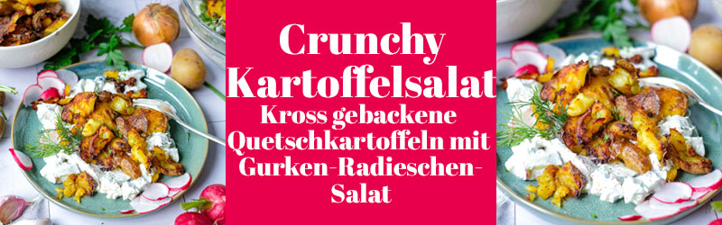 REZEPT: Crunchy Kartoffelsalat – Kross gebackene Quetschkartoffeln mit Gurken-Radieschen-Salat