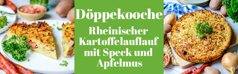 REZEPT: Döppekooche ~ Rheinischer Kartoffelauflauf mit Speck und Apfelmus