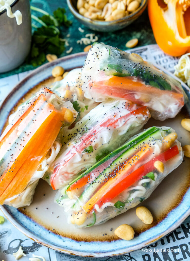 Sommerrollen mit knackigem Gemüse, Erdnüssen & Mie Nudeln
