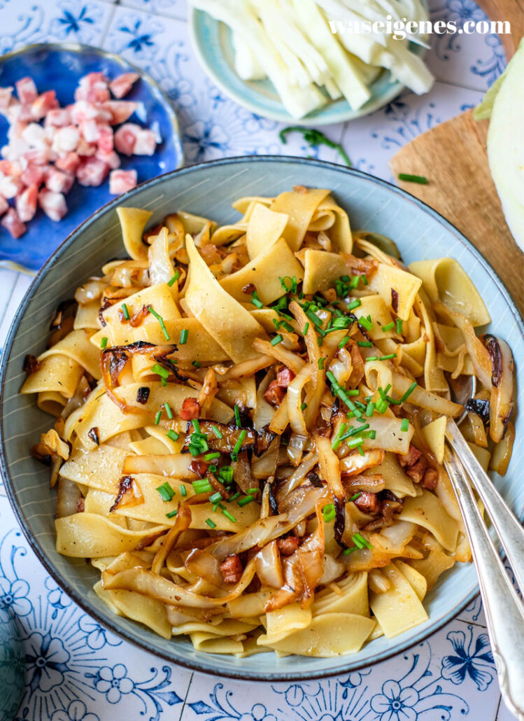 Ist das nicht einfach? Ich sag’s wie es ist: ich könnte mich in die Pfanne setzen, so lecker schmecken diese Krautnudeln mit Speck.