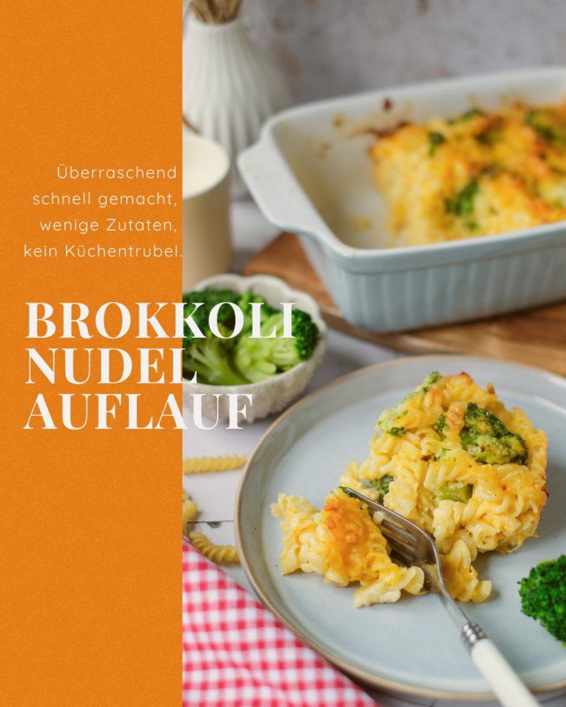 Dieser Auflauf kommt ganz ohne Schnickschnack aus: Nudeln, Brokkoli, eine einfache Sauce, ab in den Ofen – fertig. Kein langes Vorbereiten, keine ausgefallenen Zutaten. Genau deshalb ist er ideal für den Alltag und auch bestens geeignet, wenn Ihr für mehrere Tage vorkochen möchtet.