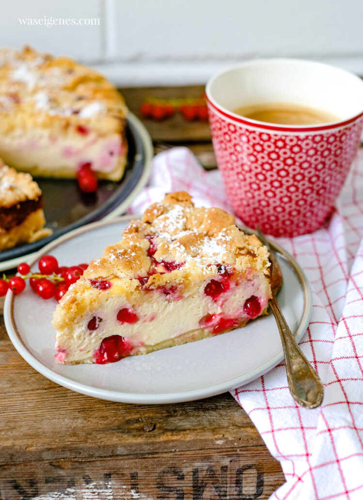Johannisbeer-Käsekuchen mit knusprigen Butterstreusel.