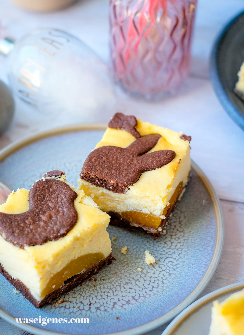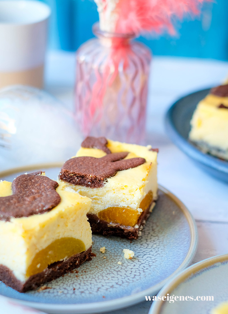 Russischer Zupfkuchen gehört zu den beliebtesten Kuchenklassikern überhaupt. Die Kombination aus schokoladigem Teig und cremiger Quarkfüllung macht aus ihm einen ganz besonders leckeren Käsekuchen. In dieser Variante wird er auf dem Blech gebacken – eignet sich also bestens für größere Kaffeerunden – und mit fruchtigen Aprikosen ergänzt. Statt der typischen Teigzupfen habe ich Ostermotive – Hasen, Küken und Tulpen – aus dem Schokoteig ausgestochen und auf dem Kuchen verteilt. Das sieht hübsch aus und macht den Kuchen zu einem schönen Hingucker im Frühling oder zur Osterzeit.