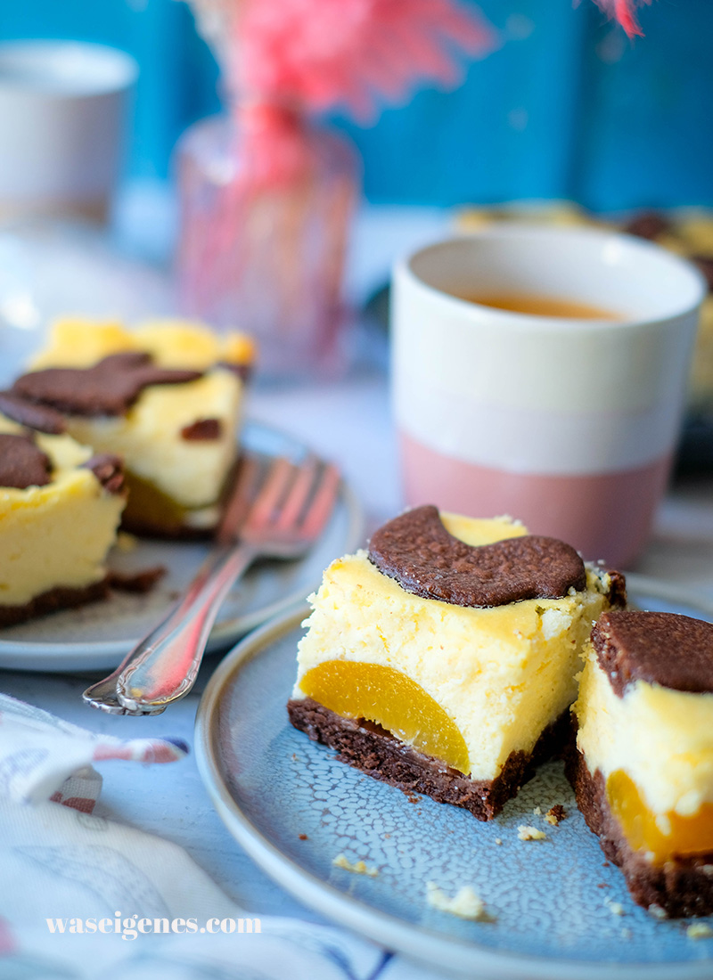 Wie ich oben schon beschrieben, habe ich aus dem klassischen Zupfkuchen einen Zupfkuchen mit Obst gemacht – alles in allem ist er also nicht nur cremig, sondern auch noch fruchtig. Aprikosenhälften eignen sich ganz wunderbar, die leicht säuerliche Note harmonieter bestens mit der cremigen Quarkfüllung.