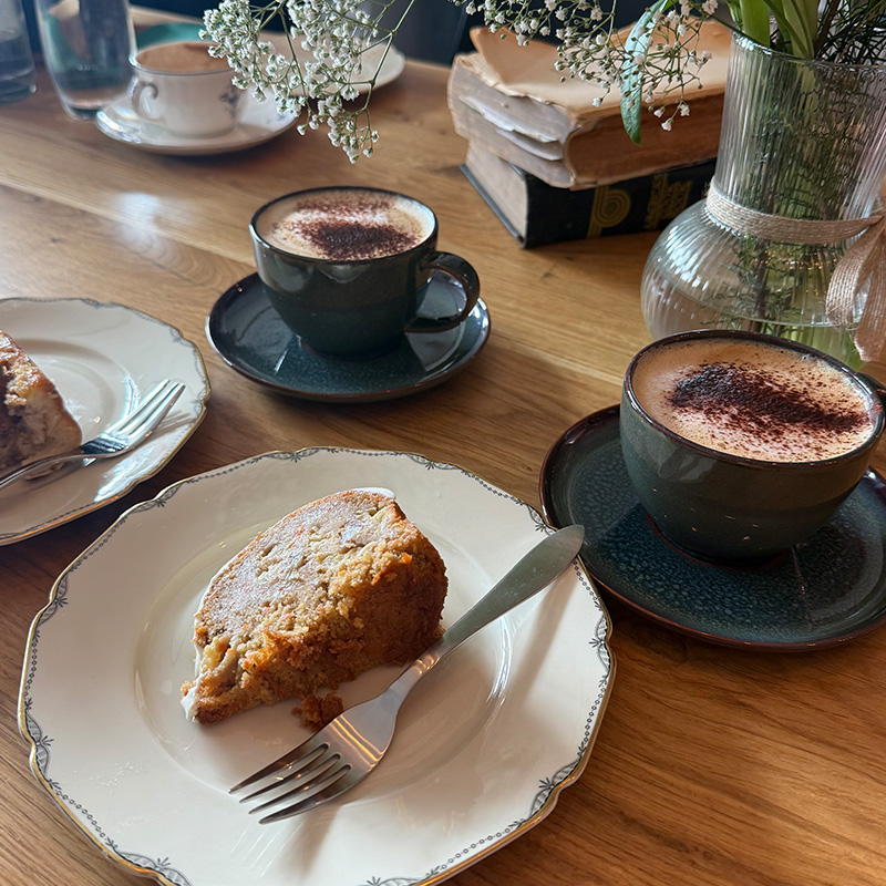 GEFREUT & GENOSSEN: Im März haben Maja und Die Jungs Sascha und Torsten mal wieder ihr Pop-Up Café im Oma Lore Studio op de schäl Sick in Köln eröffnet. Das Tochterkind und ich sind hin und haben uns einmal durch’s Kuchenbuffet schnabuliert. Wir haben Majas allerbeste Zimtschnecken probiert und ja, sie schmecken fantastisch und einen Möhrenkuchen und lecker Cappuccino gab es auch. Der Laden war gerammelt voll, so viele Gäste! Toll, hat mich wahnsinnig für meine lieben Kollegen gefreut. Das nächste Pop-Up findet im Juni statt.