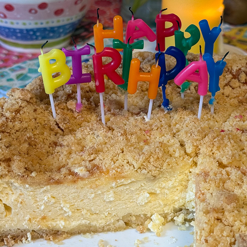 Beide haben natürlich einen Kuchen von mir geschenkt bekommen. Einmal gab es den obligatorischen Marmorkuchen, seit 18 Jahren Pflichtprogramm und eine Woche später habe ich einen Käsekuchen mit Streuseln gebacken. Lecker, sage ich Euch! Das Rezept gibt es hier (noch) nicht, wird aber nachgeholt, denn die Familie war begeistert.