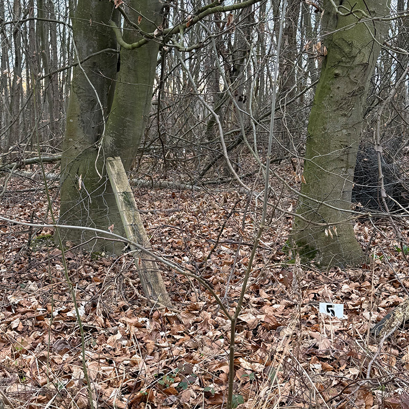 GEWUNDERT: Immer wenn ich im Wald an dieser Nummer, die da schon sehr lange steht, vorbei gehe, frage ich mich: Was ist das? Wurde die 5 beim Aufräumen eines Tatortes vergessen?