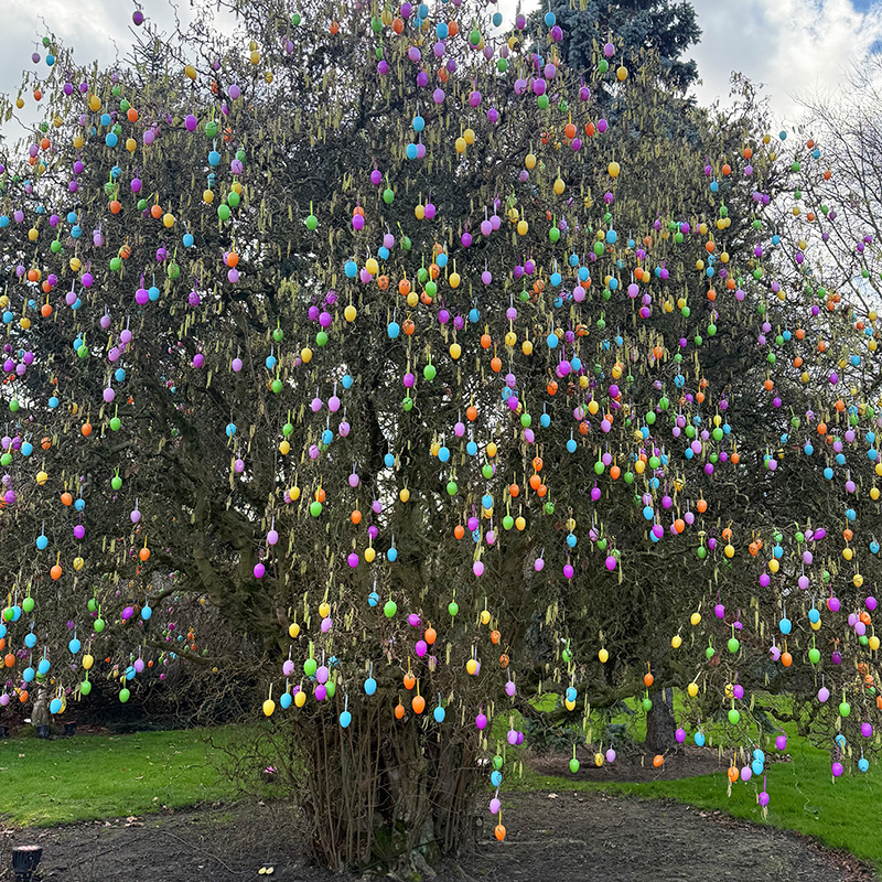 GETRIGGERT: Jedes Jahr, seit über 10 Jahren, poste ich auf meinem Instagram Kanal und auch hier bei meinen Rückblicken den Eierbaum vom Gertrudenhof. Die Fotos erzeugen immer viele Reaktionen. Die meisten Leute sind baff erstaunt, überrascht, fast alle fragen sich, wie lange man wohl für das Aufhängen der Eier braucht (keine Ahnung) und wieviele Eier da hängen… Dieses Jahr hat das Bild wieder enorm eingeschlagen, mein Gott! Damit habe ich echt nicht gerechnet. Was mich persönlich erstaunt, fast schon ein bisschen verletzt hat: Es wurde angenommen und damit mir quasi unterstellt: Das Bild, der Baum wäre KI.