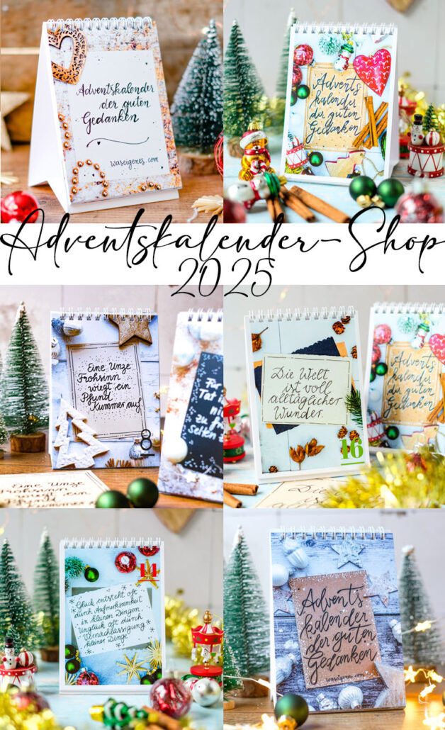 Ihr Lieben, dass es in diesem Jahr keinen Adventskalender der guten Gedanken als Tischkalender geben wird, das hatte ich in einem meinem August-Monatsrückblick schon erwähnt, was aber möglicherweise der ein oder anderen durchgegangen ist und deswegen schon einige Emails bei mir eintrudelten. Also melde ich mich heute nochmal auf diesem Wege zu dem Thema und darf schonmal vorab greifen: Der Shop ist wieder geöffnet – für kurze Zeit.