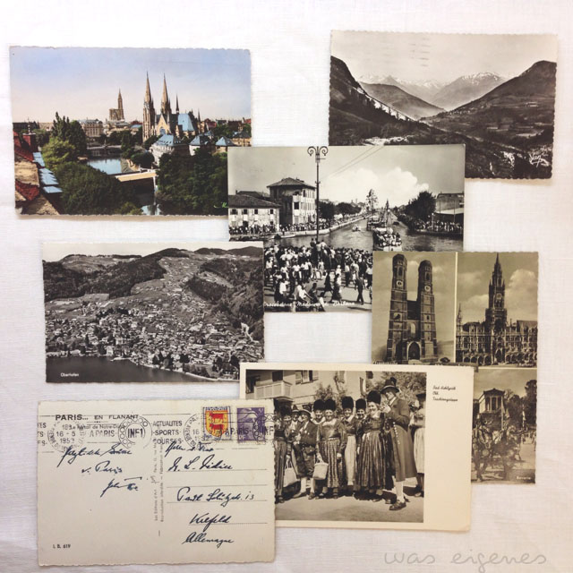 In den Tagen vor unserem Trip kramte ich uralte und von mir wie einen Augapfel gehütete Postkarten und Korrespondenzen heraus, die ich von meinen Großeltern geerbt habe. Mein Opa starb 1988, meine Oma habe ich leider nie kennen gelernt, denn sie starb bereits 1967. Die meisten der vielen vielen Karten kann ich nicht lesen, denn die Handschriften meiner Vorfahren, Freunde oder Geschäftspartner meiner Vorfahren waren sehr schnörkelig und die Karten und Briefe teilweise auf französisch verfasst. Da muss ich leider leider passen.