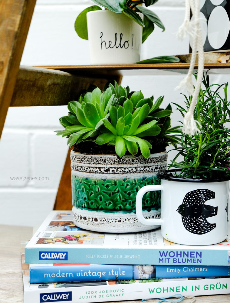 Es hat mir einen riesen Spass gemacht und hat es ingesamt ewig gedauert, mir die entsprechenden Etsy Produkte auszusuchen, die passenden Pflanzen zu kaufen und dann alles auf meiner urban jungle Leiter zu fotografieren. Aber genau das ist die Message: Hoppla-hopp ist sowas nicht umzusetzen. Gut Ding will Weile haben, dann hat man auch lange etwas davon.