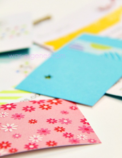 Da ich keinen DIN-A-4 Karton im Haus hatte, habe ich die Visitenkarte einfach auf weißem Schreibmaschinenpapier (sagt man das noch so? Wer schreibt denn noch auf einer Schreibmaschine?!) gedruckt und dieses Blatt auf bunten Fotokarton geklebt. Erst danach habe ich die Karten zugeschnitten.