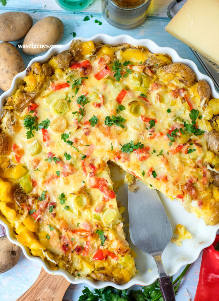 Habt Ihr schon von dieser verrückt leckeren Quiche gehört, bei der die gekochten Kartoffeln direkt in die Auflaufform gelegt und mit Hilfe eines Topfes ganz einfach gequetscht werden? So entsteht ein köstlicher Kartoffelboden, der anschließend mit einer würzig-cremigen Mischung aus Porree, Spitzpaprika, Schmand und Käse gefüllt wird. Danach wandert die Form in den heißen Ofen – und nach kurzer Zeit duftet es in der Küche nach Quetschkartoffel-Quiche! Genau das richtige Comfortfood für kühlere Tagen.