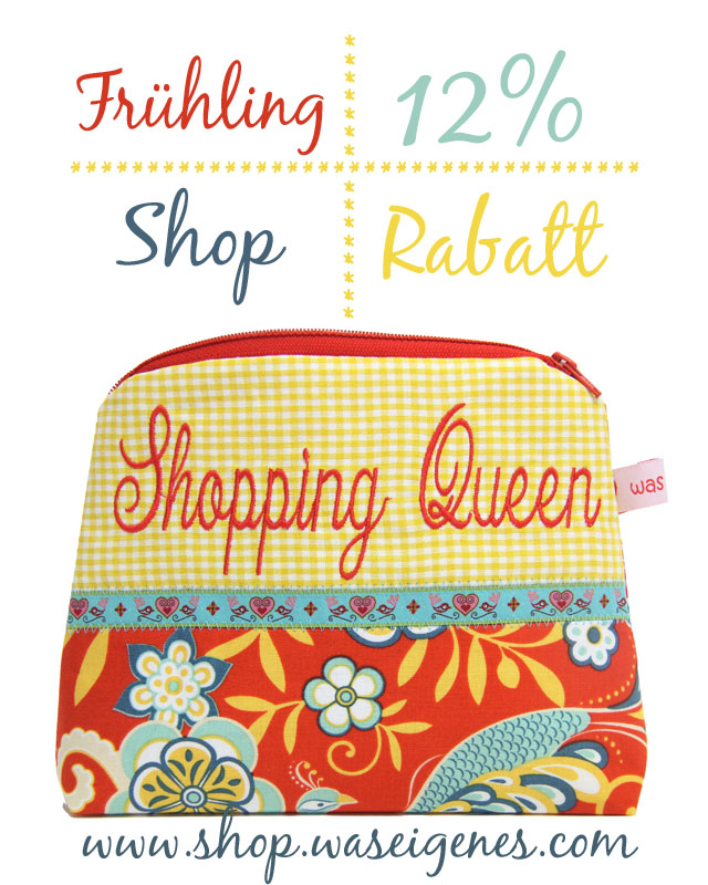 Passend zum Jahreszeitenwechsel gibt es ab heute im Shop einen Frühlingsrabatt in Höhe von 12% auf alle Täschchen. Der Shop ist recht gut gefüllt und es werden jeden Tag neue Schminktäschchen ins Regal gestellt. Wer also auf der Suche nach einem Ostergeschenk ist, der schaue in den kommenden Tagen mal bei Dawanda rein. Das Special läuft bis zum 6. April 2014.
