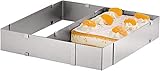 - Verstellbarer Tortenring in viereckiger Form – perfekt zum Herstellen eigener Köstlichkeiten auf dem Backblech, zum Beispiel Kuchen, Torten, Pizza usw.
