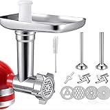- Kompatibel mit allen Kitchen Aid- Küchenmaschinen & PHISINIC ,Einfache Aufbewahrung ,Langlebiger Fleischwolf aus Metall Feine, mittlere und grobe Mahlscheibe, 2 Wurstfüllhörner