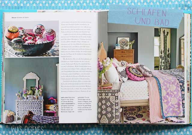 Für alle bunt-Liebhaber und Selbermacher, für Stoffsüchtige, Musterfans und Menschen, die gerne ihren vier Wände einen ganz persönlichen Stil geben möchten, kann ich dieses Buch wärmestens empfehlen. Auf den letzten Seiten gibt es nützliche Websites und Tipps (wo man z.B. Stoffe, Möbel, Leuchten, Keramik, Borten, Spitzen, Tapeten, ect kaufen kann) sowie einige tolle Blogs (die ich tatsächlich alle kenne!) … und was mich wahnsinnig megasuperduper gefreut hat- auch der was eigenes Blog wird genannt (und das, obwohl es hier doch gar nicht sooo bunt zugeht!). Ich bedanken mich dennoch von Herzen über diesen schönen love-link!