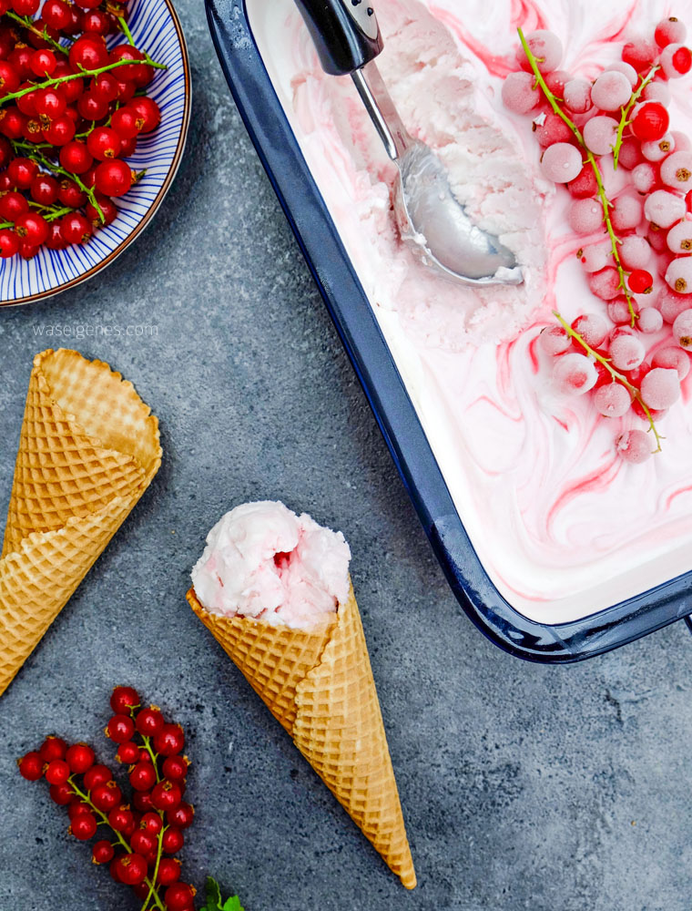 Das Eis ist, wie schon geschrieben, geschmackliche eine Wucht. Wunderbar cremiges Buttermilcheis mit leicht säuerlichen Johannisbeeren…mhhh! Eine für mich perfekte Komposition!
