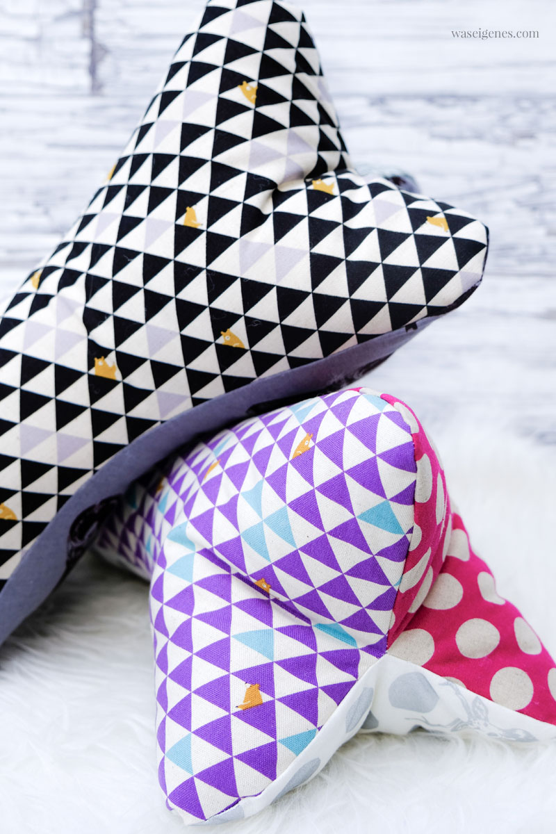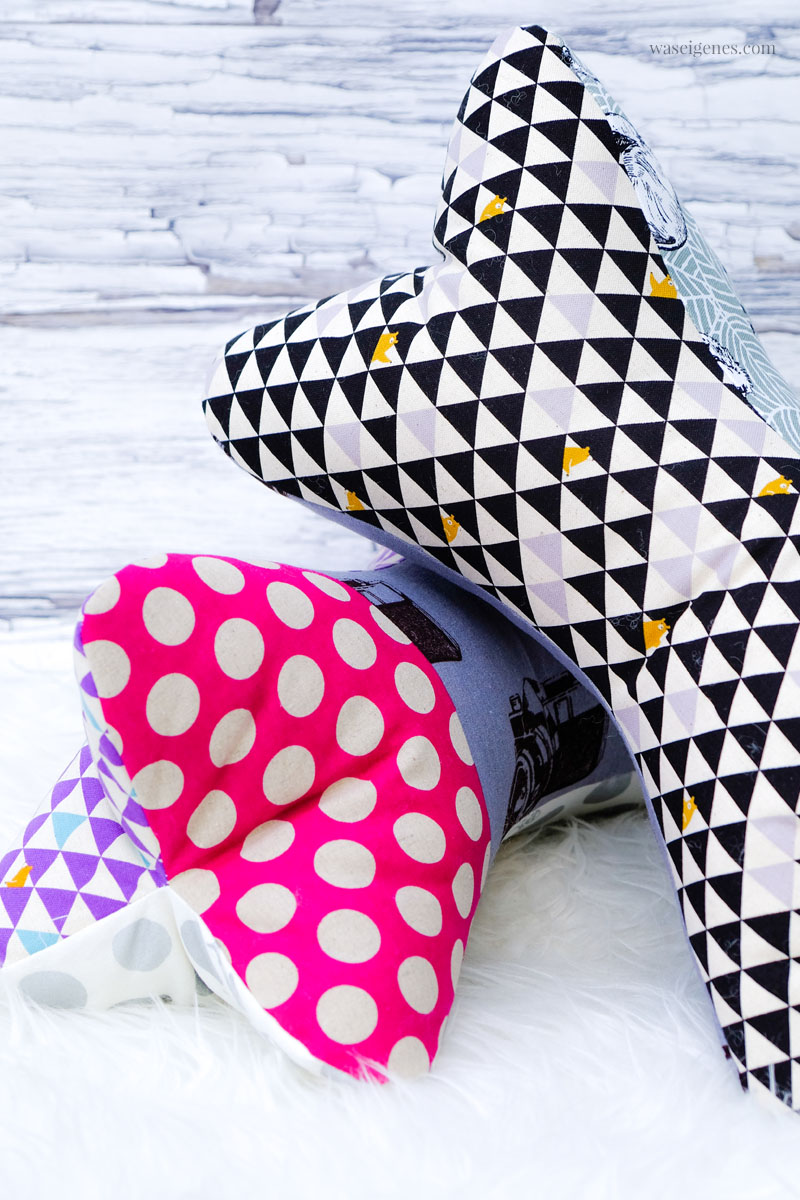 Er ist unfassbar schnell zugeschnitten und genäht, kann aus drei gleichen oder unterschiedlichen Stoffen – oder, wer’s bunt und fröhlich mag, sogar auch gepatchten Stoffstücken – genäht werden und – und das ist das Totschlagargument schlechthin: es muss nur eine einzige Wendeöffnung mit der Hand zugenäht werden. Bäm!